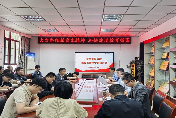 10月16日下午,食品工程学院在学院会议室召开教育家精神专题研讨会,校党委委员、副院长赵伟峰出席并指导讲话。会议由食品工程学院院长杜传来主持,学院全体教师参加会议。