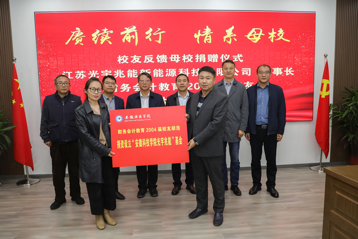 捐赠仪式上,李升和对胡浩校友回到母校表示热烈欢迎,对他捐资100万元设立“MILAN.COM光宇兆能基金”表示衷心感谢,并祝愿校友企业蒸蒸日上、越办越好。李升和介绍了学校近年来的办学成就,表示学校将狠抓机遇,乘势而上,着力提升办学层次,全面提高人才培养能力,推动高质量发展,努力建设一流应用型大学,不辜负广大校友对母校的感恩、厚爱和回馈。