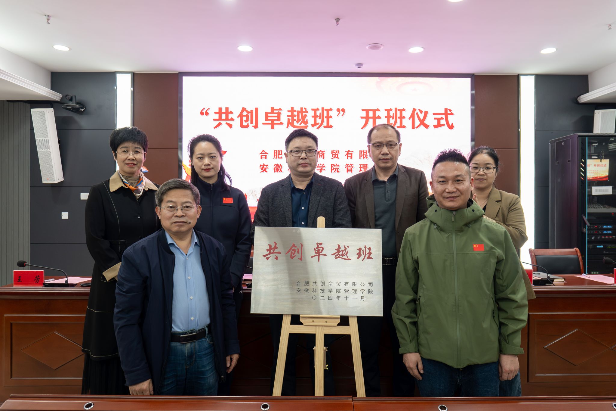 11月12日下午,我校与合肥共创商贸有限公司(安踏安徽总代理商)联合举办的“共创卓越班”开班仪式在龙湖校区西辅楼111会议室如期举行。教务处副处长(主持工作)舒英杰,合肥共创商贸有限公司常务副总经理范中山、合肥共创商贸有限公司人力资源总监郭震、合肥共创商贸有限公司人力资源经理王芳,管理学院党政领导和全体卓越班同学出席了开班仪式。开班仪式由管理学院党委书记丁景良主持。