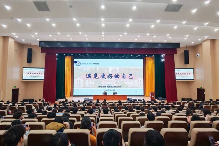 徐川结合个人学习成长经历,围绕“寻找自我、发展自我、成就梦想”等方面,通过专业学习、学生工作、能力提升等关键词,分享了个人迷茫但不迷失自我,挫败却奋发图强的成长历程,以亲身经历鼓励同学们勇于挑战自我,在反复实践中挖掘并发现自身潜能,锤炼意志品格,从容应对大学生活中的迷茫与挑战,从而遇见和成就最好的自己。