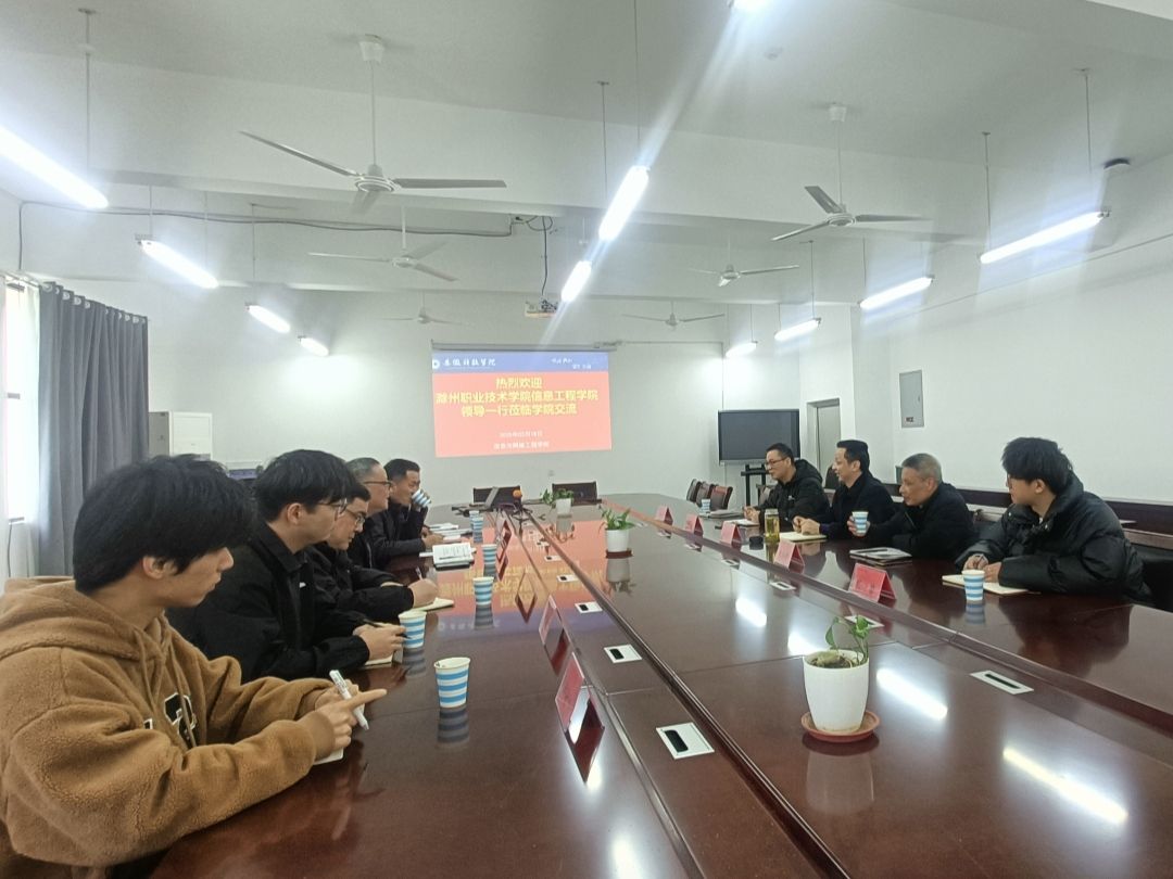 3月18日上午,滁州职业技术学院信息工程学院院长陈开兵,副院长邹军国一行来校考察交流。信息与网络工程学院院长余宏杰,副院长曹浩,计算机系主任段汉根等参加了会议,会议由余宏杰主持。