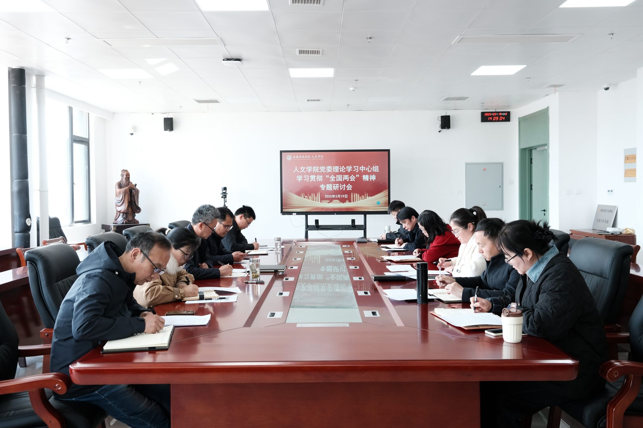 为深入学习贯彻全国两会精神和习近平总书记系列重要讲话精神,准确把握两会提出的新目标、新任务、新要求,进一步统一思想、凝心聚力、奋发进取,推动学院和学校事业高质量发展,3月19日下午,人文学院召开党委理论学习中心组学习贯彻全国两会精神专题学习研讨会。研讨会由人文学院党委副书记、院长李晓东主持,党委理论学习中心组成员和党支部书记参加。