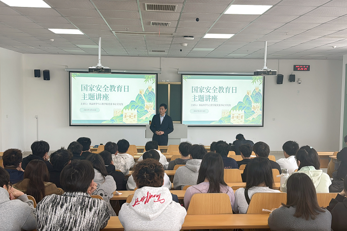 4月15日上午,食品科学与工程学院在学院1楼阶梯教室开展了国家安全教育日讲座。学院全体辅导员、学生代表参加活动,学院党委书记付光玺主讲,讲座由学院党政办主任赵传磊主持。