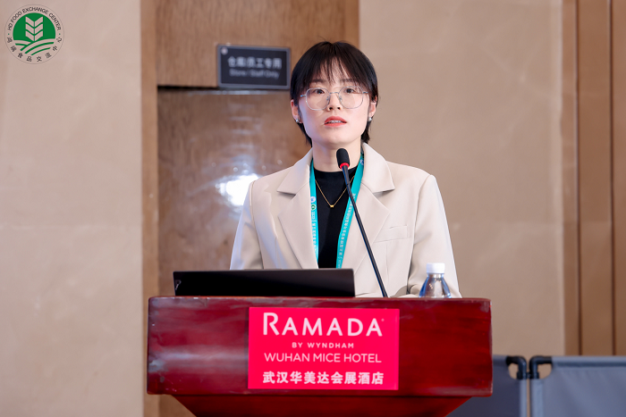 翟立公以“杂豆糯米粉重构对低GI汤圆品质影响”为题作学术报告。报告中系统分析了传统糯米粉制品的高GI特性及其健康风险,提出通过杂豆与糯米粉的精准复配技术,并结合湿热技术对混合淀粉进行改性,利用杂豆中丰富的膳食纤维和抗性淀粉等功能组分,有效调控淀粉消化特性,成功开发出具有低升糖指数特性的红豆糯米汤圆专用粉。该研究不仅阐明了杂豆组分对糯米粉GI值的调控机制,更为传统糯米制品的健康化改造提供了切实可行的技术方案。