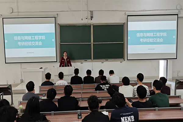 4月23日下午,信息与网络工程学院在致知楼B111举办考研经验交流会。学院党委副书记韦乃学,部分教师、2025届优秀考研学子代表和2026届各班考研同学参加本次会议,会议由专职辅导员许磊主持。