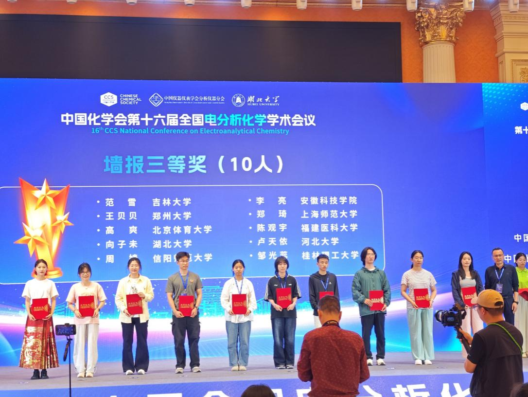 4月25日至28日,由中国化学会主办的第十六届全国电分析化学学术会议在武汉成功召开。我校化学与材料工程学院唐婧教授课题组2021级本科生李亮获评优秀墙报三等奖,这是我校本科生首次获此奖项。