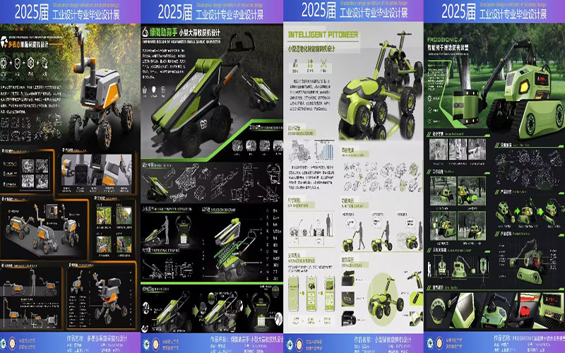 本届毕业设计作品紧密对接时代发展脉搏与社会现实需求,展现出多元化的创新视角与扎实的专业功底:智能农业装备设计,聚焦科技赋能现代农业,部分作品深度融合物联网与人工智能技术,提出了提升农业生产效率的智慧解决方案;适老化设计,深入关注银发群体需求,运用人机工学与情感化设计理念,致力于提升老年生活的便捷性、安全性与尊严感;绿色设计,强调生态友好理念,在材料选择、生产流程优化及产品全生命周期管理上充分体现可持续发展的追求;生活用品创新设计,从日常细节出发,以新颖构思巧妙优化用户体验,解决实际问题,琳琅满目的设计作品生动诠释了工业设计连接科技创新与人文关怀的核心价值,毕业设计答辩环节同期举行。
