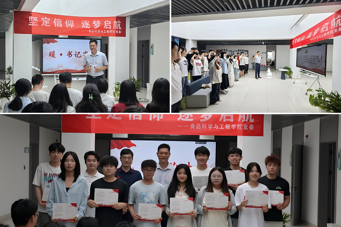 6月9日下午,食品科学与工程学院党委在学院五楼文化长廊举办了以“坚定信仰,逐梦启航”为主题的毕业生党员主题党日活动,学院党委领导出席活动,各学生党支部书记、全体毕业生党员参加活动。