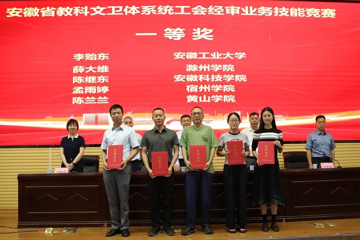 6月13日上午,安徽省教科文卫体系统工会经审业务技能竞赛在安徽理工大学举行。来自全省教科文卫体系统工会的近60名经审业务骨干同台竞技。我校工会经审委成员、财经学院陈继东副教授代表学校工会经审委参加竞赛,最终荣获一等奖。