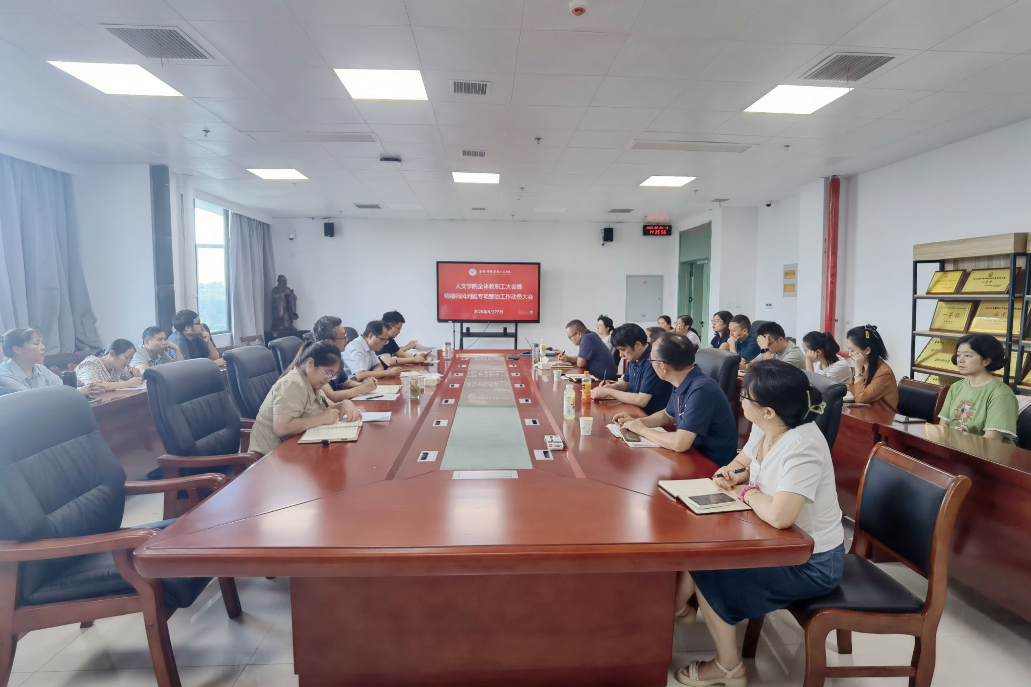 8月29日下午,人文学院召开全体教职工大会暨师德师风问题专项整治工作动员大会,会议由学院正处级组织员张严政主持。
