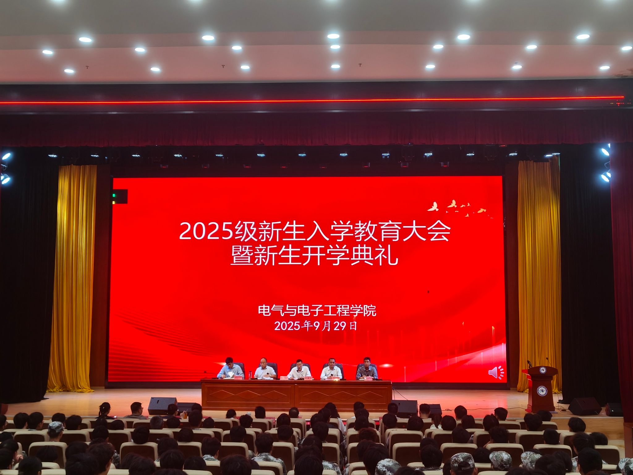 9月29日,电气与电子工程学院在龙湖校区东辅楼报告厅举办了2025级新生入学教育动员大会。学院党政领导、全体辅导员以及全体2025级新生参加,会议由学院党委书记骆海邦主持。