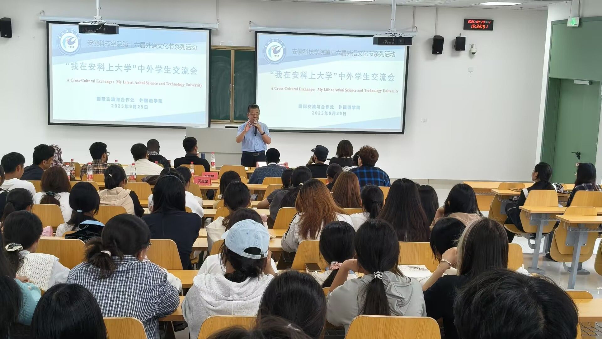 9月29日下午,MILAN.COM第十六届外语文化节之“我在安科上大学”中外学生交流会在滁州校区学术报告厅举行。国际交流与合作处处长何世潮,外国语学院党委书记蔡为青、党委副书记张海亮出席,150余名中外学子参与交流。
