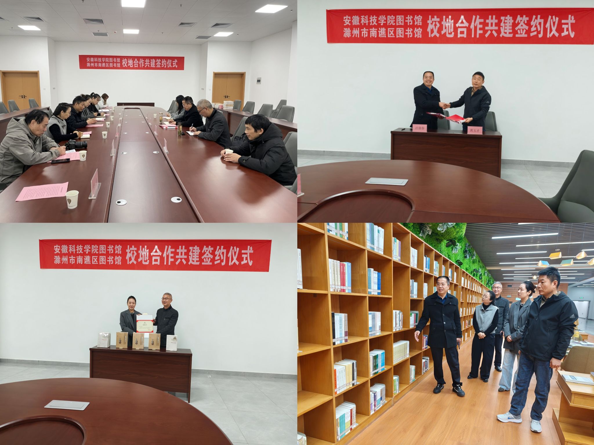 协议签署后,黄玉才和南谯区图书馆分别向我校图书馆捐赠了图书。签约仪式结束后,来宾在汪徐春等陪同下实地参观考察了滁州校区图书馆。