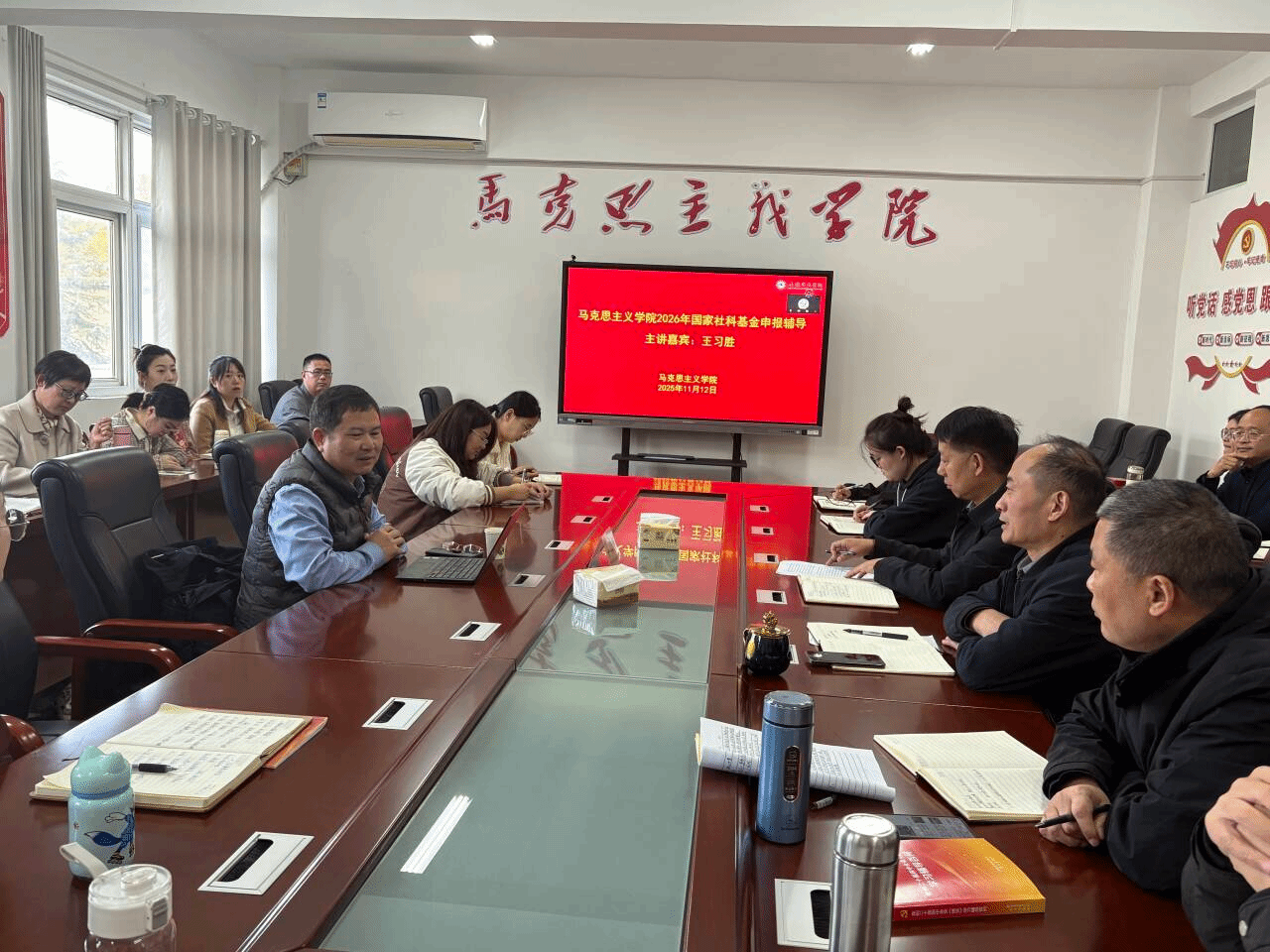 11月12日下午,马克思主义学院邀请安徽师范大学马克思主义学院王习胜教授进行2026年国家社科基金申报专项辅导。学院全体师生参加,马克思主义学院院长张德化主持。