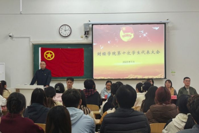 11月14日下午,财经学院第十次学生代表大会在龙湖校区致知楼C107教室召开。财经学院党政领导和有关教师出席会议。来自学院各学生组织和班级的学生代表共63人参加会议。会议由财经学院学生会秘书长主持。