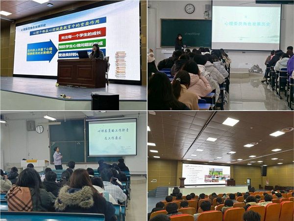 12月3日,学生处组织开展班级心理委员及宿舍心理健康宣传员专题培训。培训由辅导员姚姝媛、张薇薇、王永芳三位老师主讲。