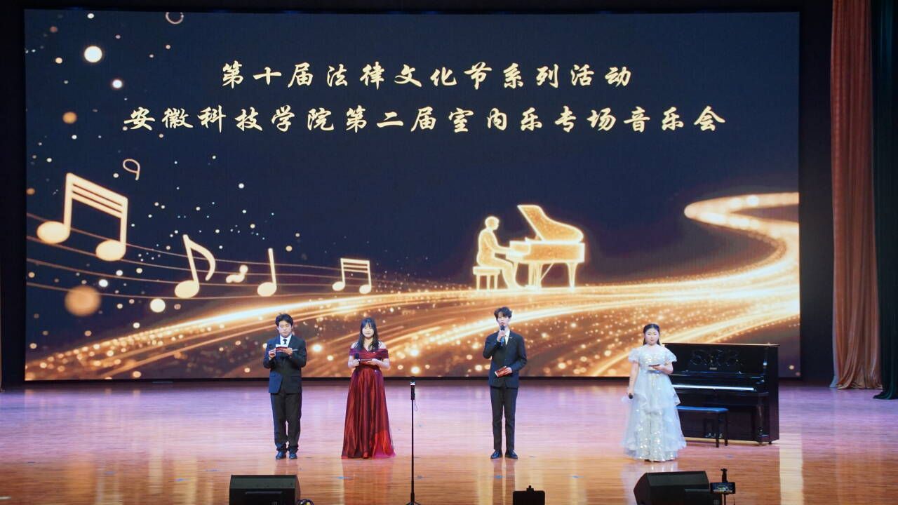 为推进高雅艺术进校园,助力明文化美育基地实践建设,丰富“法律文化节”活动内涵,12月21日晚,人文学院及校学生器乐协会携手蚌埠市音乐家协会室内乐团、合肥优音乐团,共同为师生呈现了一场精彩纷呈的艺术盛宴。