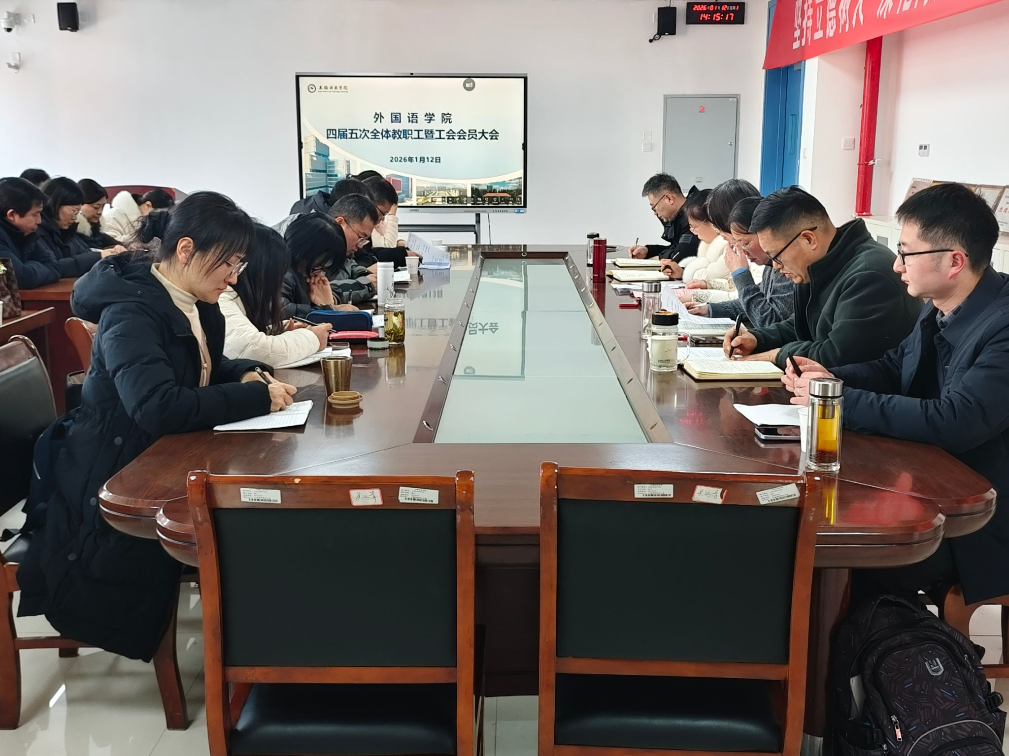 1月12日,外国语学院四届五次教职工暨工会会员大会在学院会议室召开。会议由学院党委书记蔡为青主持。