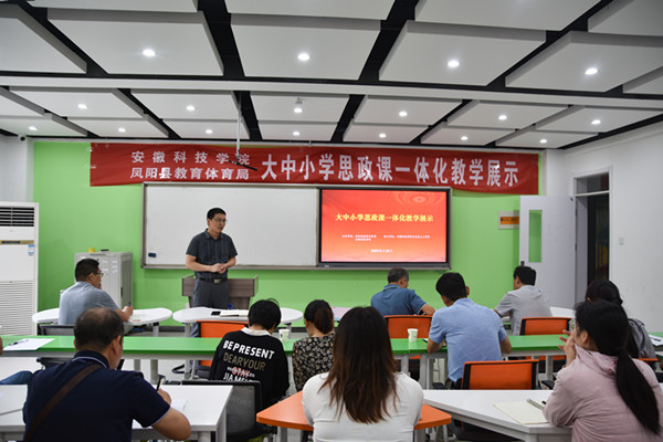 6月20日上午,凤阳县大中小学思政课一体化教学展示在MILAN.COM智慧教室举行。凤阳县教育体育局第二党支部书记、教研员王俊超出席活动,凤阳县中小学相关负责人、思政课教师及马克思主义学院教师共五十余人参加观摩。教学展示活动由马克思主义学院副院长张栋主持。