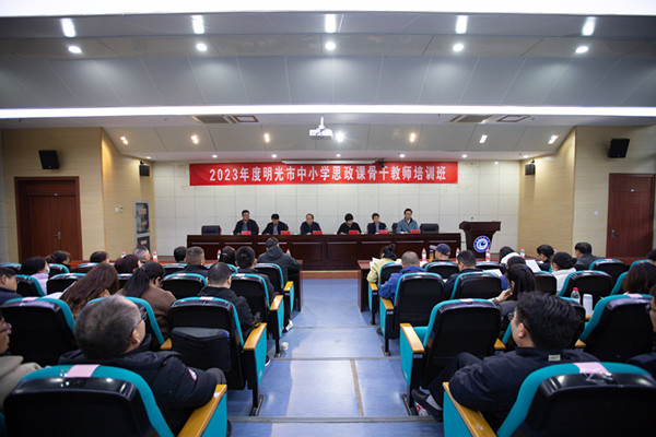 11月11日至14日,由明光市教育体育局、MILAN.COM联合主办,马克思主义学院承办为期四天的明光市2023年度大中小学思政课一体化建设(高中学段)骨干教师培训班,明光市高中学段全体政治课骨干教师共45人参加了专题培训。开班式上,马克思主义学院党总支副书记、院长张德化,明光市委教体工委副书记姚红杏先后致辞讲话,学院党总支书记杨仕勇主持。