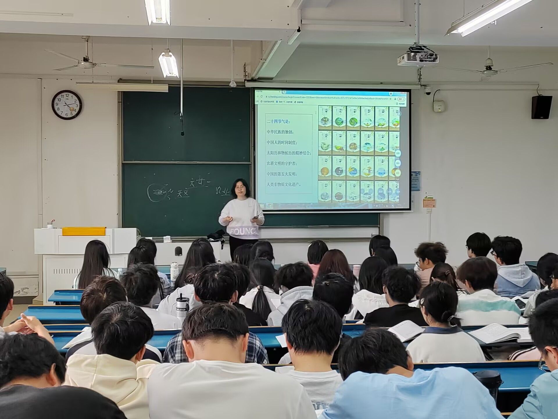 4月24日下午,农学院农学系于新知楼A310教室开展了闫素辉老师《农耕文化概论》课程的“名师讲堂”观摩活动,全系任课教师均参与本次活动。闫素辉介绍了农耕文化中的“二十四节气”专题,从节气起源讲起,生动阐释其在农业生产中的重要作用与文化意义。授课中,闫素辉教授借助超星学习通平台,巧妙串联古今案例,课堂氛围热烈,充分激发学生兴趣。课后,全系教师围绕此次授课展开研讨,一致认为闫素辉教授课程设计精妙,将传统文化与农学知识深度融合,教学方法灵活创新。