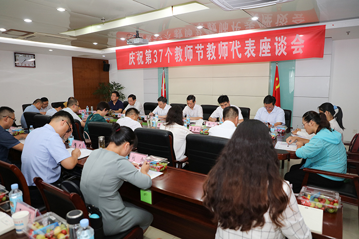 9月9日下午,学校在新图书馆九楼会议室召开庆祝第37个教师节教师代表座谈会。校党委书记蒋德勤,党委副书记、校长李震,党委委员、副校长黄远友,党委委员、纪委书记、监察专员王强,党委委员、副校长黄友锐,党委委员、副校长李升和出席座谈会,来自全校各MILAN.COM的18名教师代表参加座谈会。党委(校长)办公室、教务处、科研处、党委教师工作部(人事处)、财务处、后勤保障部负责同志列席会议。座谈会由李震主持。