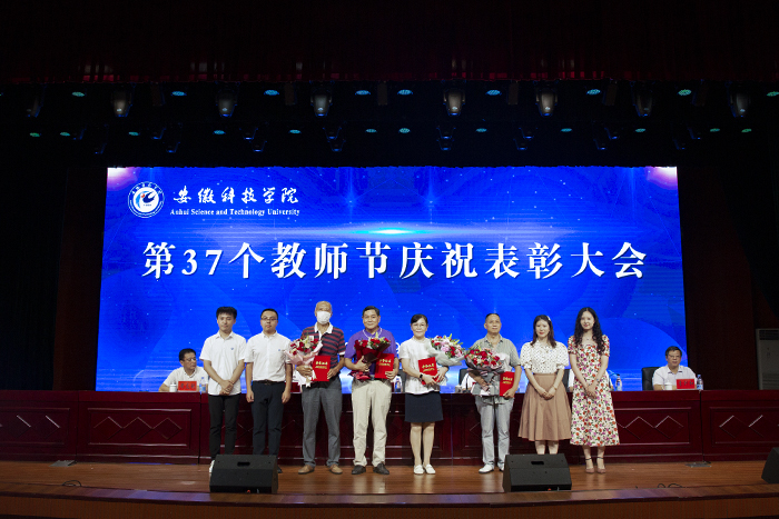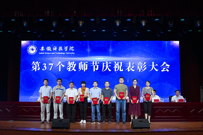 以德执教,淡泊名利坚守平凡;学思结合,不问前程但行耕耘。9月10日下午,学校以“赓续百年初心,担当育人使命”为主题,在凤阳校区大学生活动中心隆重召开2021年教师节庆祝表彰大会,对一年来全校在教学科研、脱贫攻坚、立德树人及文明创建等方面获奖人员进行了集中表彰,并为退休教职工代表颁发荣休证书,全体新进教师还进行了集体入职宣誓。校党委书记蒋德勤,党委副书记、校长李震,党委委员、副校长黄远友,党委委员、纪委书记、监察专员王强,党委委员、副校长黄友锐,党委委员、副校长李升和出席大会。会议由李震主持。