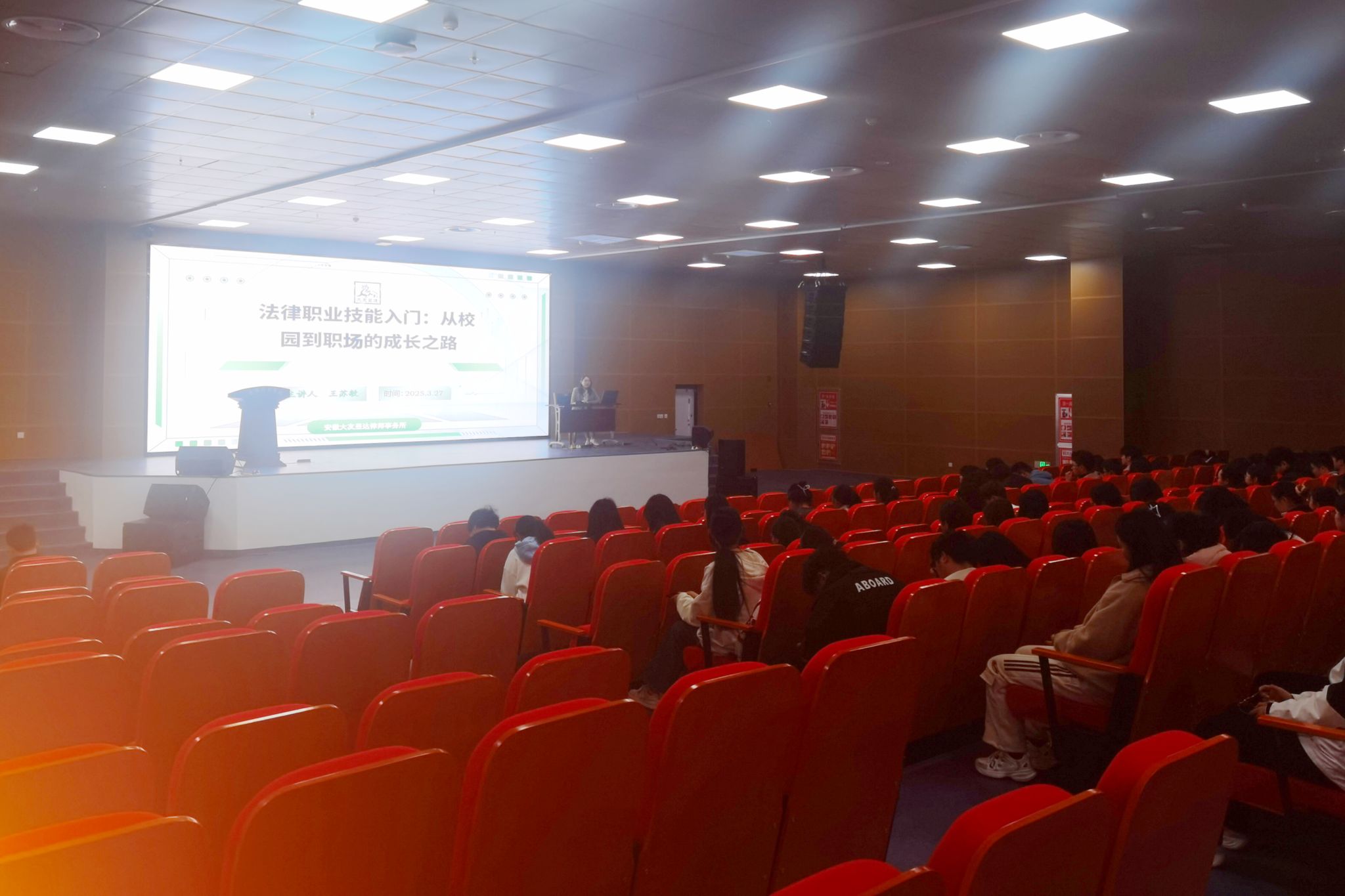 王苏敏以“法律职业技能入门:从校园到职场的成长之路”为题,描绘法律职业核心能力图谱,提纲挈领地勾勒出法律人必备的技能框架,从“法律研究与信息检索”“法律文书写作”到“沟通谈判技巧”“职业伦理与风险防范”,最后落脚于“在校生职业规划”,六个模块环环相扣,既独立成章又相互关联,体现了从“硬技能”到“软实力”、从“技术操作”到“价值引领”的递进逻辑。