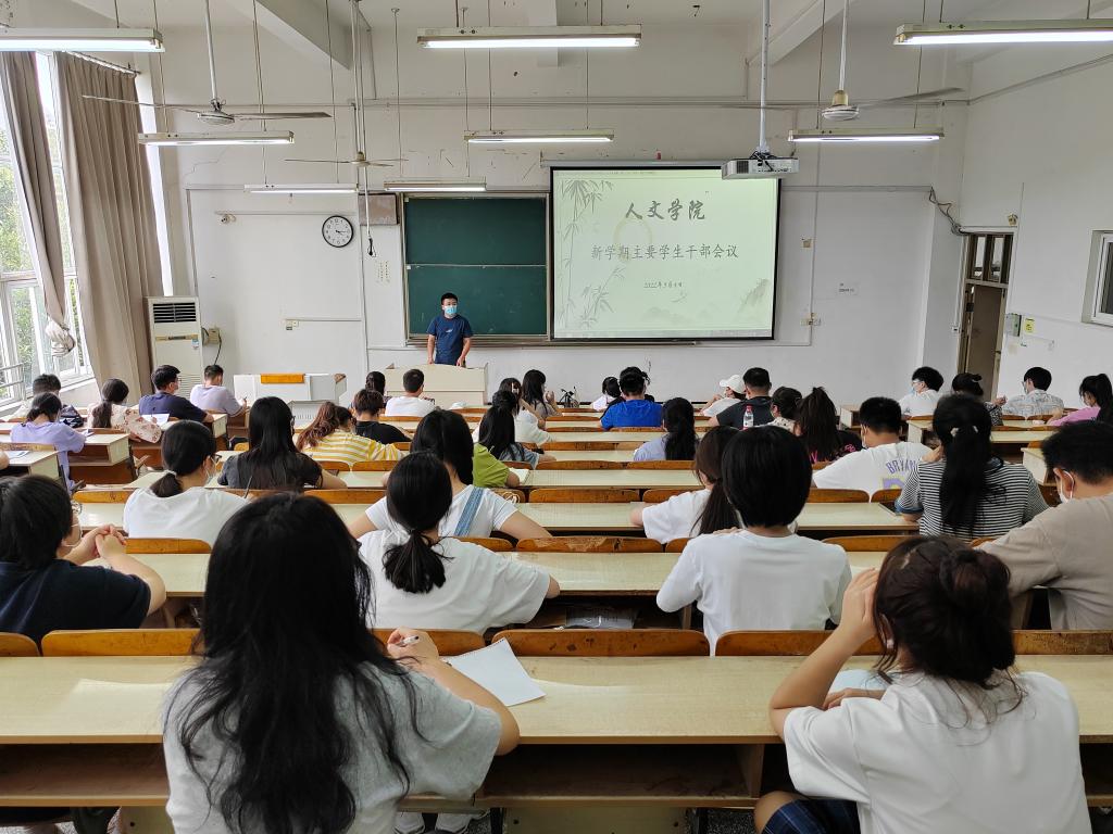 9月4日,人文学院于求A203召开新学期主要学生干部会议。学院党委副书记李沙娜、全体辅导员及班级主要班委参加。本次会议由辅导员焦雪松主持。