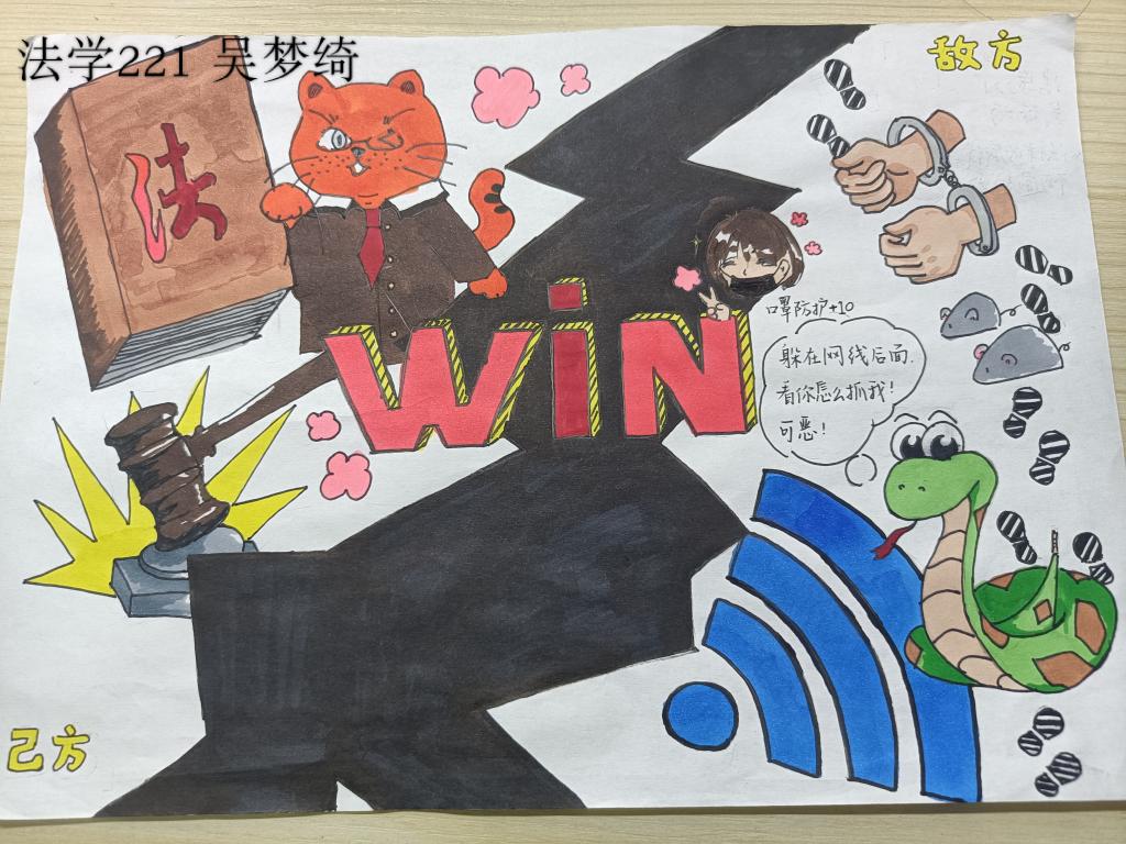 此次比赛以“法治人人行,人人参与更精彩”为宗旨,面向全院学生征集法律主题漫画作品。同学们积极参与、踊跃报名,用多彩的画笔,丰富的想象力,画出了形式新颖、创意独特和主题鲜明的漫画作品。