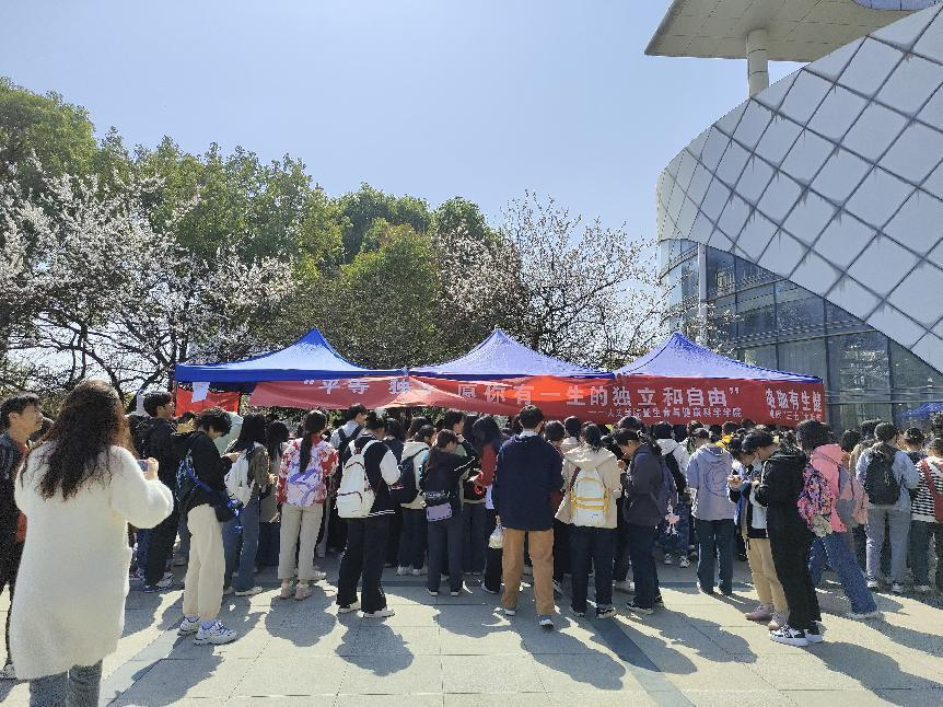 为活跃大学校园氛围,彰显我校女生自强、自尊、自信、自爱风采,关注、关爱女生健康成长。3月7日,人文学院与生命与健康科学学院在西区小广场联合举办以平等、独立、自由为主题的“3.7女生节”校园特别活动。