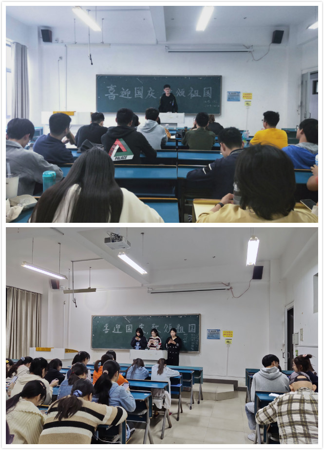 学院各班级充分组织学生参与喜迎国庆活动,以演讲、宣讲、朗诵、唱国歌、观看影片等多种形式,为祖国送出青春祝福。编辑172班以宣讲的形式,介绍我国取得的、特别是抗击新冠疫情以来的伟大成就,学习了解有关人物事迹,抒发爱国情怀。汉语言文学17卓越班团支书闫俊俊带领学生共同观看祖国近些年发展的照片,组织班级同学齐声合唱《我和我的祖国》,表达对祖国的热爱之情;该班组织委员田兆丽还通过朗诵《祖国,我爱你》这首现代诗歌,向学生们传达了真挚的爱国情感。汉语言文学192班则以各个寝室为单位,派出代表演唱爱国歌曲,朗诵爱国诗歌,进一步激发同学们的爱国主义情怀。