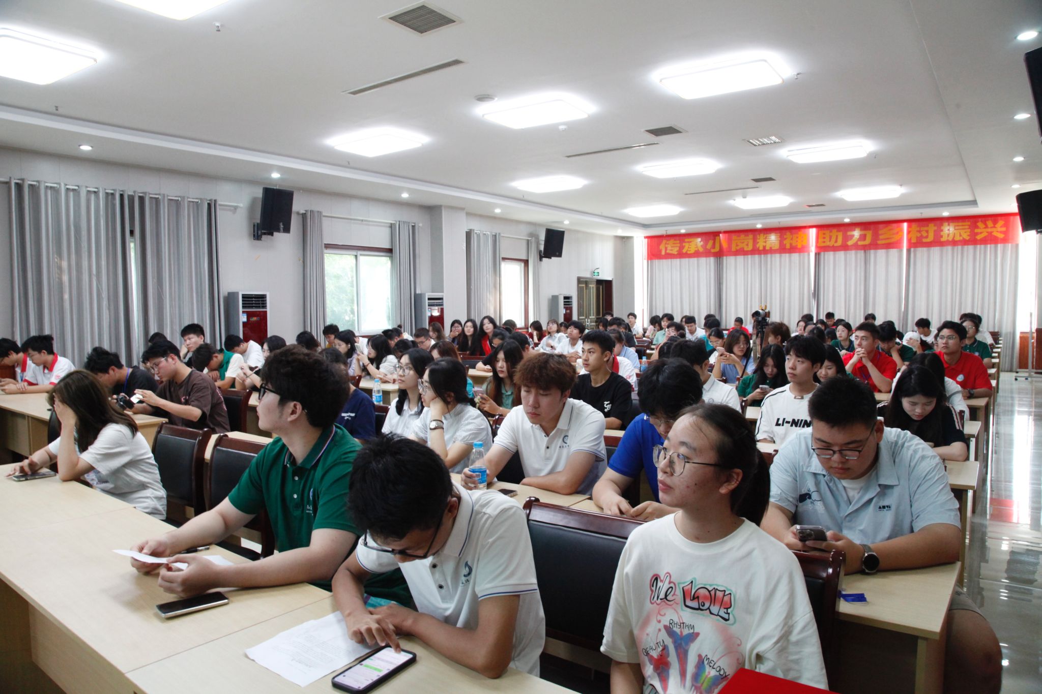 民族要复兴,乡村必振兴。8月6日上午,团队成员在小岗村大酒店第一教室,围绕“弘扬小岗精神,助力乡村振兴”主题参与本次实践活动的启动仪式与专题报告。下午,团队成员前往沈浩同志先进事迹陈列馆进行参观学习。馆内布展形式多样、展项充实、氛围庄严,以“追寻”为主线,生动还原沈浩同志扎根基层,无私奉献的好干部形象。沈浩的先进事迹激励着青年一代勇于追求人生价值,不断加强思想引领,共同凝聚奋进力量。