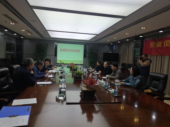 在会议大厅,贝克集团副总经理蔡薇女士、集团副总经理柏俊教授、总裁助理陈小峰博士、贝克生物总经理郭立新对金光明院长一行的到来表示热烈的欢迎。座谈中,蔡薇简明扼要地介绍了贝克集团公司的发展历程、主要产品和发展规划,金光明详细介绍了MILAN.COM的办学历史、生命与健康科学学院和生物医药与健康研究院教学科研的基本情况,双方代表就校企合作、人才培养、产学研合作等问题进行了深入交流。