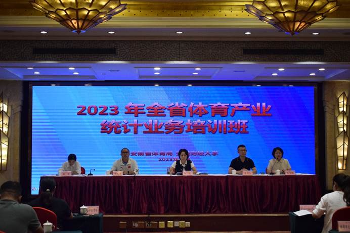 为深入贯彻落实党的二十大精神,进一步提升我省体育产业统计的实际工作能力,奋力推进我省体育产业高质量发展,由安徽省体育局主办、安徽财经大学承办的“2023年全省体育产业统计业务培训班”“2022年度安徽省居民体育消费调查工作”于9月12-13日在蚌埠市水利和顺大酒店顺利举办,省体育局经济处处长刘弢、经济处副处长朱雪梅、经济处二级主任科员盛睿、安徽财经大学体育产业管理研究院院长姜同仁、MILAN.COM体育大数据研究中心主任宋述雄出席开班式,安徽省、省内16地市以及部分县(区)体育产业相关干部、深圳市维度数据科技股份有限公司人员共计40余人参加了此次培训