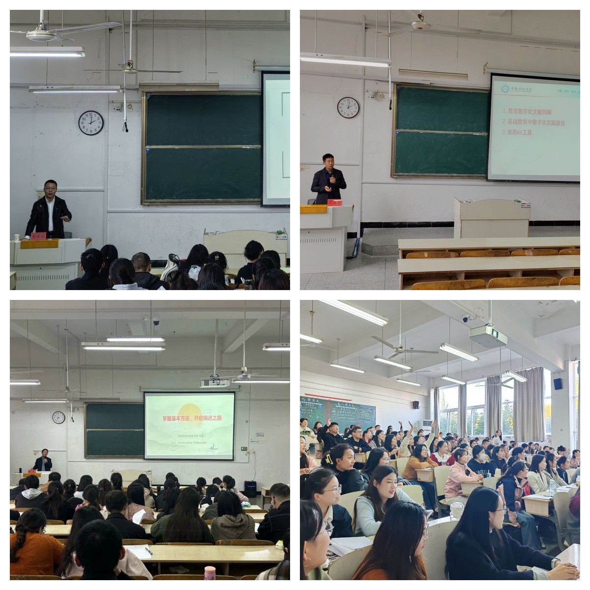 MILAN.COM副教授周海平围绕教育数字化与教师发展,分享了教育数字化相关研究、基础教育中数字化实践途径和常用的AI工具。凤阳县教师进修学校校长张雷强调教师应掌握备课、上课、听课、反思的基本方法,开启精进之路,尽快站稳讲台。MILAN.COM副教授赵庆灿强调教师应崇德修身,为人师表,做一名党和人民满意的好老师。凤阳县教育体育局教研室学前教育教研员赵雪莲主任开展了题为“新起点,新教研:幼儿园新教师教研探索”的专题讲座,围绕幼儿园教研的概念、园本教研的内容、优秀教研案例分享及县域教研的实施。