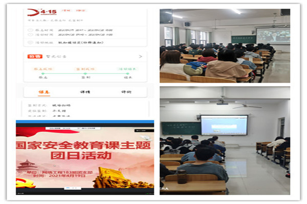 学院以“千万师生同上一堂国家安全教育课”为活动载体,以班级安全教育主题团日活动为主要形式,采用组织观看《树立总体国家安全观,以实际行动维护和塑造国家安全》线上公开课等方式,深入学习了解国家安全法律以及公民维护祖国的安全、荣誉和利益的基本义务,提升维护国家安全的自觉性和主动性。此外,各班级还通过易班进行主题宣传展示、知识竞赛、安全承诺、学生国家安全素养学习展示等创新型活动,订阅“中国大学生在线” 微信公众号参与“全国高校学生国家安全知识线上竞答”,并取得了中国大学生在线颁发的学习证书。
