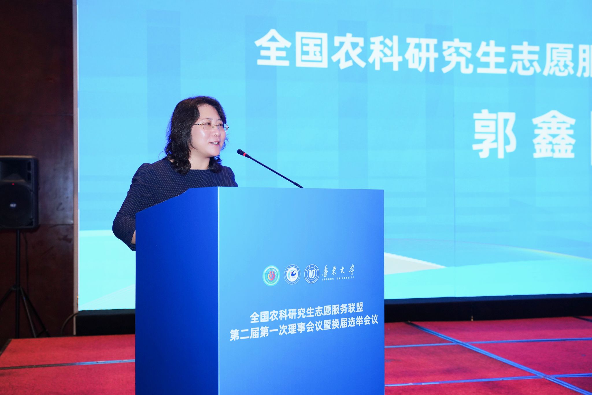 郭鑫在讲话中对联盟自2020年成立以来的工作成果给予高度评价,指出联盟第一届理事会在农科研究生志愿服务品牌打造、乡村振兴实践活动开展、成员单位协作深化等方面取得的显著成效,充分展现了农科研究生服务国家战略、助力农业发展的责任与担当。她强调,乡村振兴是国家重大战略任务,而农科研究生作为农业领域的青年人才力量,拥有专业知识扎实、创新思维活跃的突出优势。联盟要进一步发挥桥梁纽带作用,推动农科研究生将专业所学与基层需求深度结合。一方面,要深化产学研融合,积极搭建高校、科研机构与地方农业产业的合作平台,引导农科研究生在关键领域开展志愿服务,把科研成果转化为助力乡村振兴的实际成效;另一方面,要加强联盟自身建设,完善工作机制,强化成员单位间的协同合作,丰富志愿服务形式与内容,提升志愿服务的专业性、针对性和实效性,让联盟成为培养农科研究生实践能力、激发青年服务热情的重要载体,为农业强国建设注入更多青春力量。