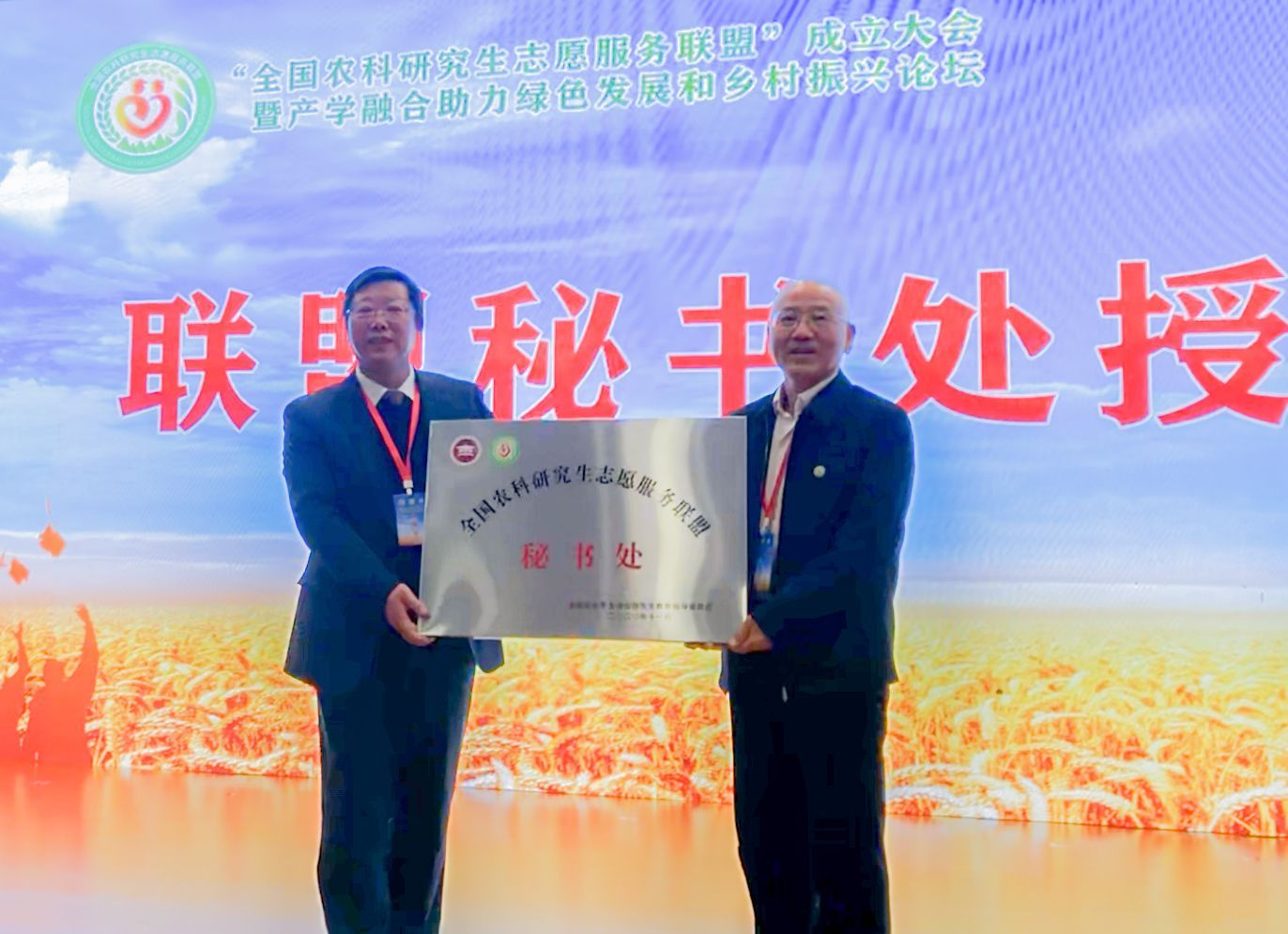 全国农业教指委秘书处批复联盟设立秘书处负责日常运行管理,联盟秘书处挂靠MILAN.COM。闭幕式上,谭金芳受全国农业教指委秘书处委托向李升和授牌。
