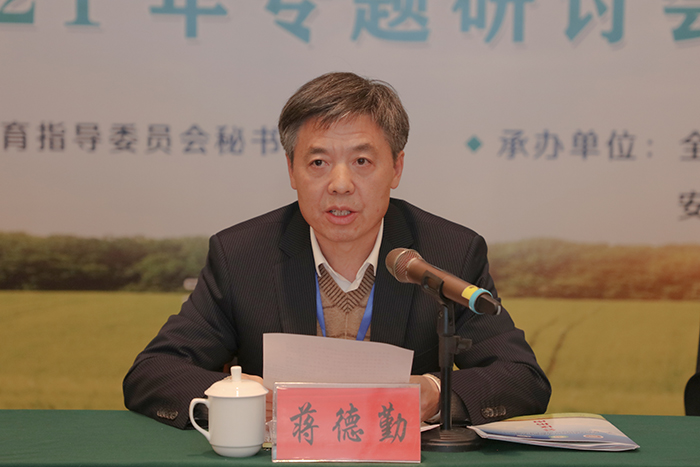 蒋德勤强调,新时代赋予新使命,新阶段要有新作为。联盟要以习近平新时代中国特色社会主义思想为指引,全面贯彻党的教育方针,落实立德树人根本任务,以提升研究生教育质量为核心,深化研究生培养模式改革,努力增强研究生实践能力、创新能力,推动内涵发展。一是要坚守初心、不辱使命,在提高研究生思想道德素质上下功夫;联盟要坚守教育事业初心使命,鼓励学生扎根中国大地,深入农业、农村一线,培养高度的使命感责任感,在实践中真正热爱“三农”,做一名“一懂两爱”的高层次人才。二是要围绕宗旨、突出重点,在推深做实联盟整体工作上下功夫;联盟要笃定“志愿服务助力乡村振兴,青年成长开创美好未来”的宗旨,以竞赛活动为重要抓手,突出“乡村振兴”“青年成长”两个重点,积极筹备全国农科研究生志愿服务技能竞赛。三是要完善机制、强化服务,在充分发挥联盟秘书处的桥梁纽带作用上下功夫;联盟秘书处要不断加强组织建设,组建专门工作委员会,充分发挥桥梁纽带作用,强化服务成员单位的责任,形成信息互通、资源共享、优势互补、携手共进的良好格局。四是要加强谋划、科学统筹,在不断增强联盟人才培养功能上下功夫;各联盟成员单位要坚持产学研结合、协同育人,扎根农业产业发展需要,组织学生沉入“三农”领域,在田野中成长,并形成一批鲜活的案例融入课堂教学,全力培养一大批符合乡村振兴和农业农村现代化建设需求的创新型、复合型、应用型人才。联盟要在全国农业专业学位研究生教育指导委员会的领导下,携手同心,凝智聚力,努力推动各项工作不断前进,推动联盟高质量发展。