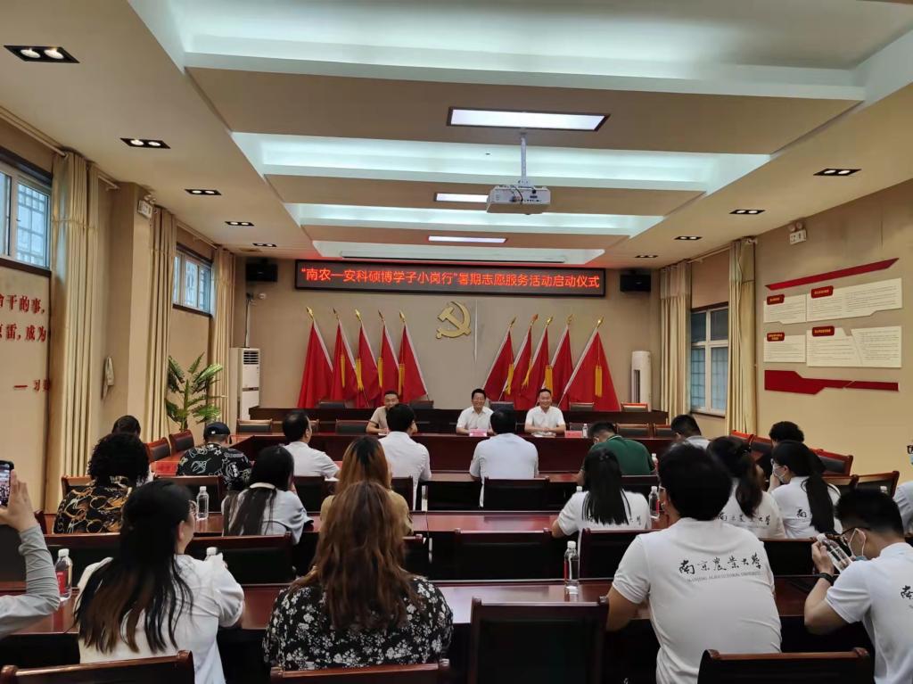 李升和宣布首届“南农-安科硕博学子小岗行”暑期志愿服务活动正式启动。他指出,两校联合开展暑期志愿服务活动有效践行了全国农科研究生志愿服务联盟的宗旨,有利于推动农科研究生服务乡村振兴的创新实践,挖掘争先创优的成功模式。期待同学们以此次志愿服务活动为契机,形成自己的志愿服务特色,积极为明年举办的首届全国农科研究生志愿服务技能大赛做准备。