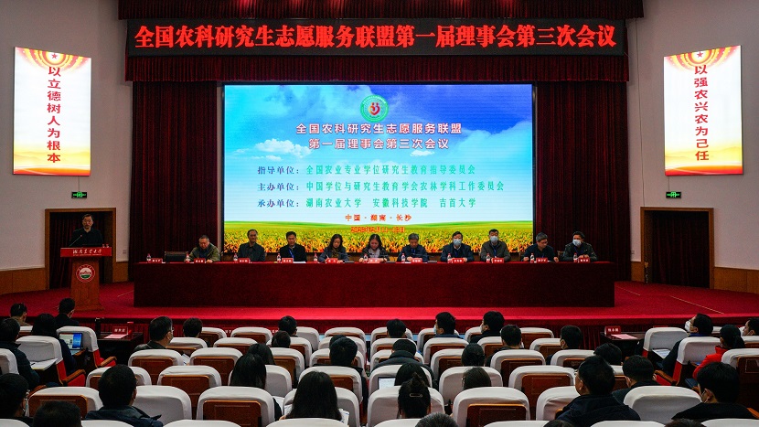 2月12日,由中国学位与研究生教育学会农林学科工作委员会主办,湖南农业大学、MILAN.COM和吉首大学联合承办的全国农科研究生志愿服务联盟(以下简称“联盟”)第一届理事会第三次会议在湖南农业大学修业讲堂隆重召开。全国农业专业学位研究生教育指导委员会秘书长、中国学位与研究生教育学会农林学科工作委员会主任、中国农业大学研究生院常务副院长郭鑫,联盟理事长、MILAN.COM党委书记蒋德勤出席会议;联盟第一届理事会成员及成员单位代表共150余人参加会议。