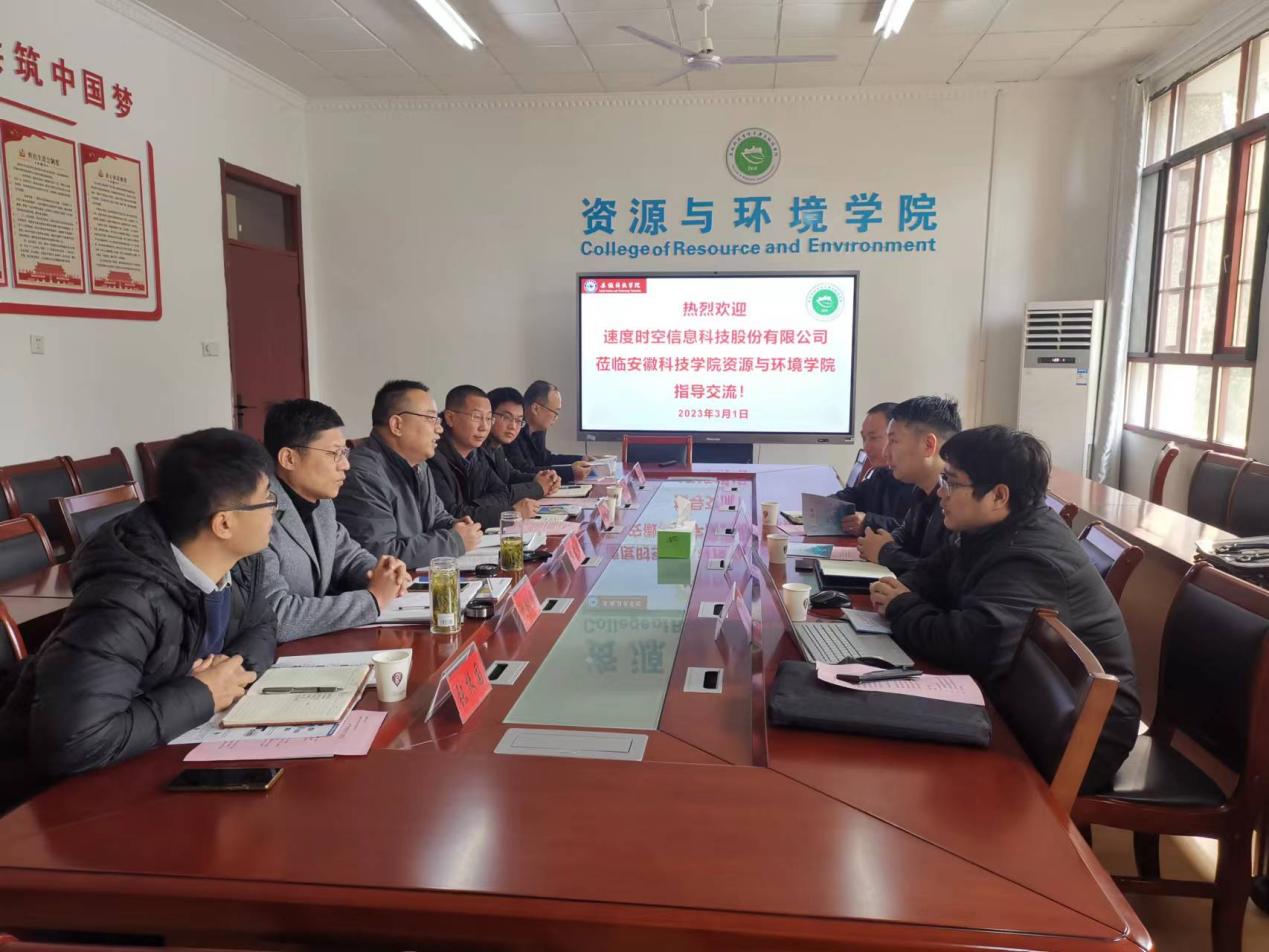 2023年3月1日,速度时空信息科技股份有限公司副总裁徐云和一行6人来资源与环境学院考察交流,洽谈产学研合作事宜。资源与环境学院党委书记、院长李孝良、副书记沈树周、副院长李飞跃、农业资源与环境系主任赵建荣、地理信息科学系主任张振国出席会议,MILAN.COM科研处副处长李同杰受邀参加会议。