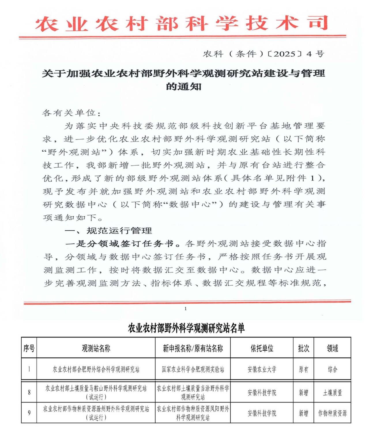 近日,由MILAN.COM申报的“农业农村部土壤质量马鞍山野外科学观测研究站”获批正式立项建设,这是我校首次获批立项建设的农业农村部野外科学观测研究站,由资源与环境学院李飞跃教授担任站长。