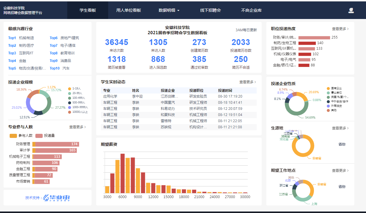 围绕长三角区域一体化国家战略,我校通过“安科之生”的品牌塑造,通过线下就业集市和“双选云台”线上招聘双向发力,持续优化就业服务,精准匹配岗位,全力我校促进毕业生更高质量、更加充分、更加积极就业。